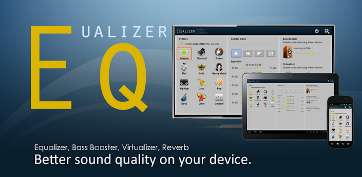 Equalizer erlaubt es dir Soundeffekte so einzustellen, sodass du das Beste aus deiner Musik oder deinen Sounds bekommst. Nutze vorinstallierte Voreinstellungen basierend auf Musikgenres, oder erstelle schnell eigene reinstellungen mithilfe des 5-Band-Equalizers. Zusätzliche Soundeffekte, die unterstützt werden sind: Bass Booster, Virtualizer und Reverb.