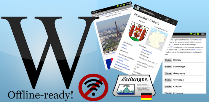Android-Applikation für mobile Wikipedia Enzyklopädie. "Die freie Enzyklopädie". Wikipedia-Enzyklopädie funktioniert auch auf Tabletten mit Honeycomb (Android 3.0), Ice Cream Sandwich, Jelly Bean. Wiki Lexikon.